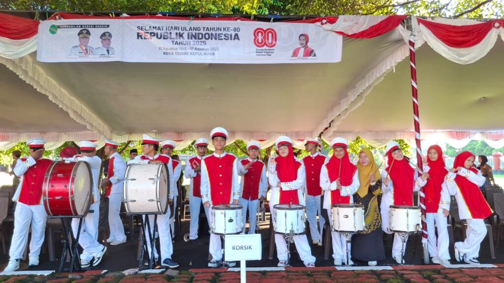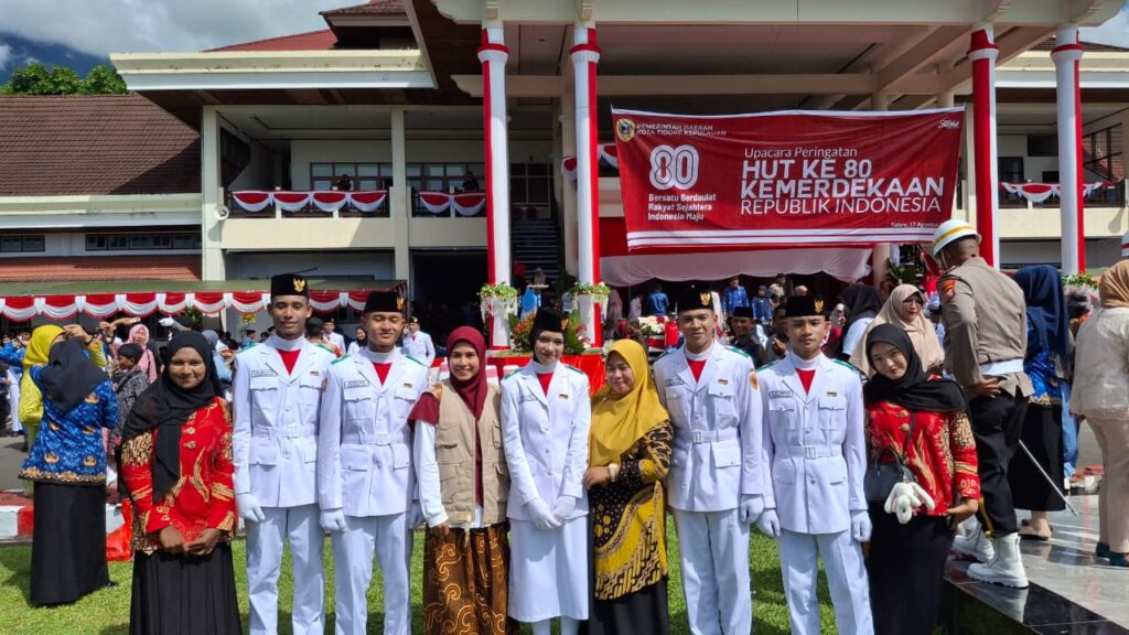 Tidore,HumasMAN2Tikep (17/08/2025) – Sebanyak 5 siswa MAN 2 Tidore Kepulauan sukses menjalankan tugas mulia sebagai Pasukan Pengibar Bendera (Paskibraka) pada upacara peringatan Hari Ulang Tahun ke-80 Kemerdekaan Republik Indonesia. Upacara yang berlangsung di halaman Kantor Wali Kota Tidore Kepulauan ini berjalan penuh khidmat.