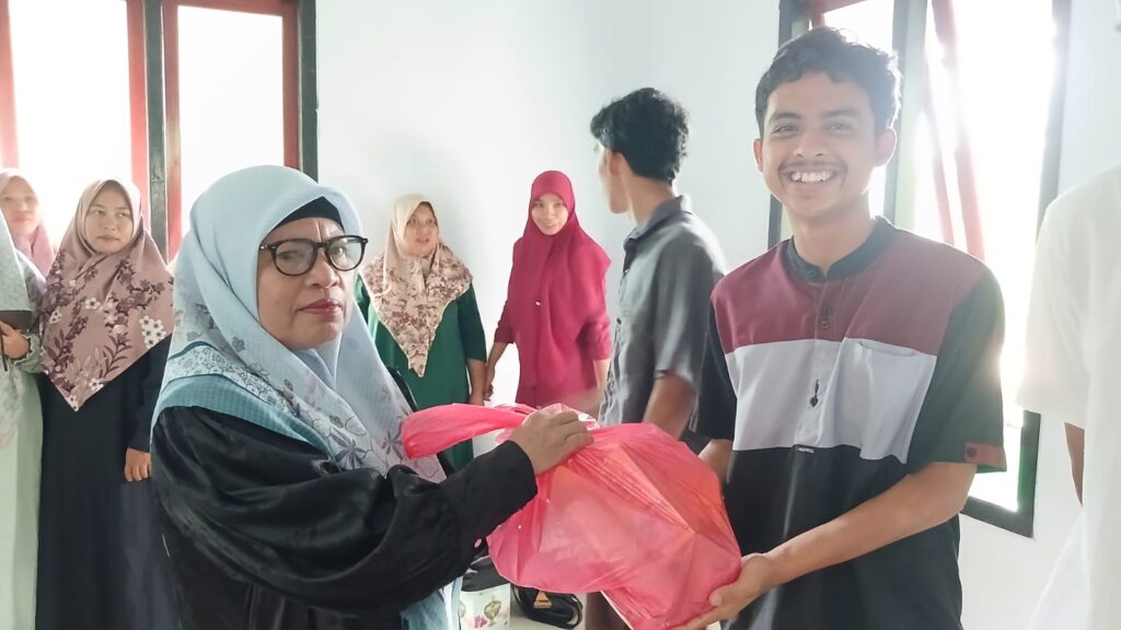 Setelah pemberian apresiasi, kegiatan dilanjutkan dengan penyaluran 33 paket sembako kepada siswa-Siswi yatim piatu dan Tenaga Honorer di lingkungan Madrasah. Dana bantuan ini merupakan hasil dari program “Sedekah Jumat” yang dikumpulkan secara rutin oleh guru, tenaga kependidikan (tendik), dan seluruh warga madrasah selama sembilan bulan terakhir.