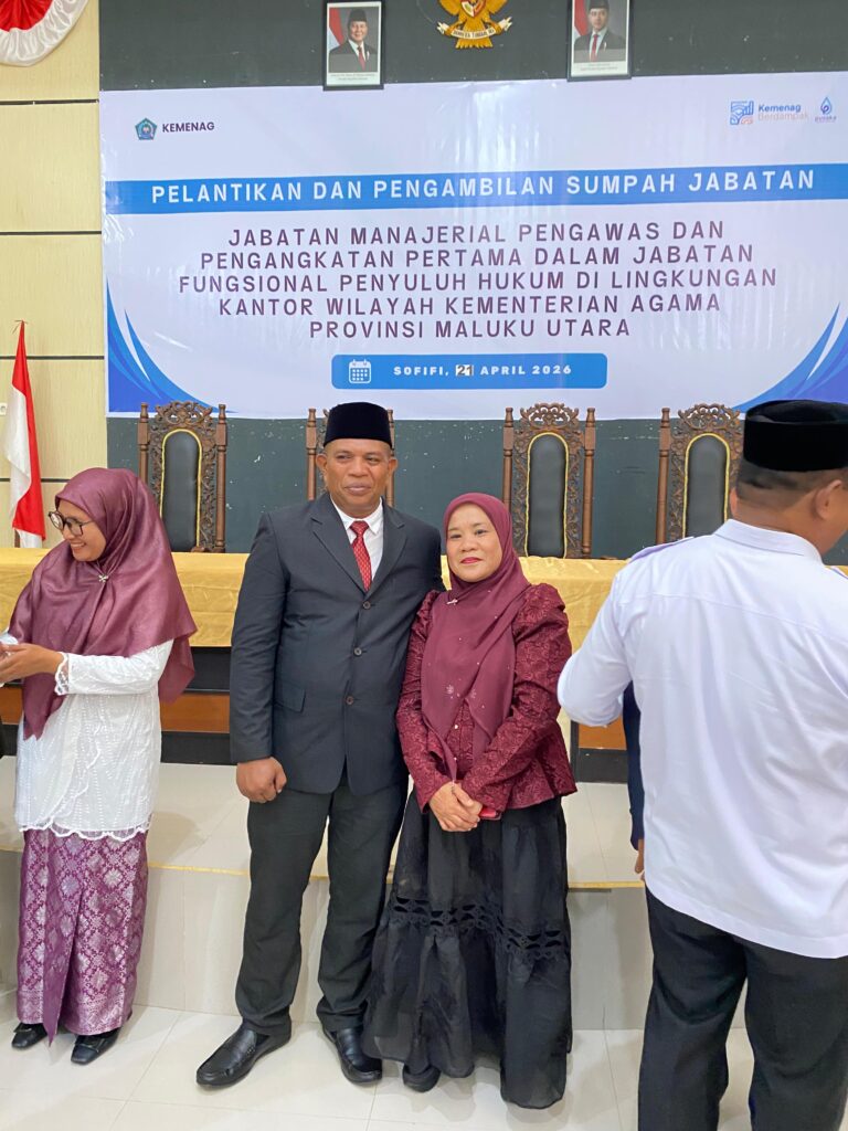 Pelantikan tersebut dilaksanakan pada Selasa, 21 April 2026, bertempat di Aula Kantor Wilayah Kementerian Agama Provinsi Maluku Utara. Prosesi pelantikan dipimpin langsung oleh Kepala Kantor Wilayah Kementerian Agama Provinsi Maluku Utara, Bapak H. Amar Manaf, dan dihadiri sejumlah pejabat serta insan pendidikan madrasah.